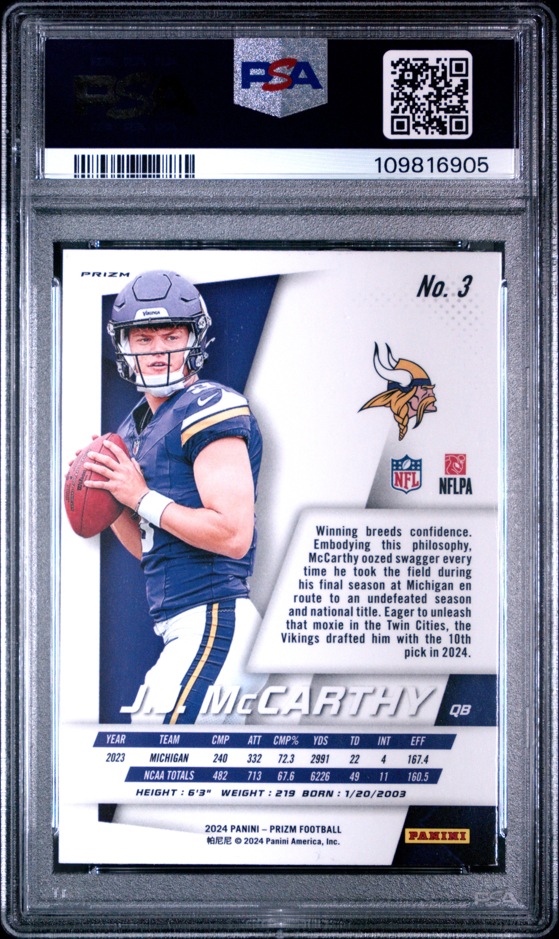 2024 Panini Prizm Prizm Flashback Rookie JJ Mccarthy #3 PSA 9