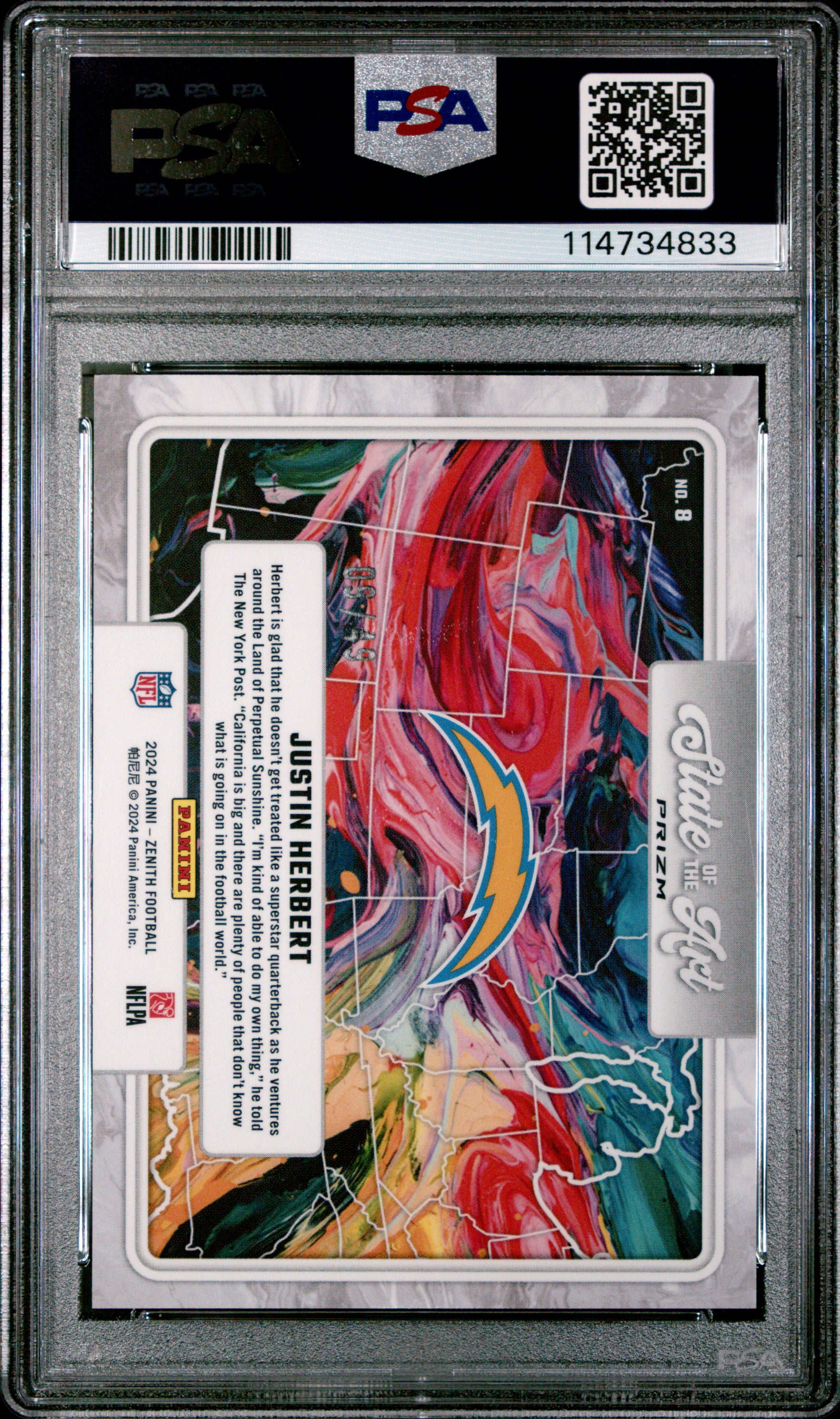 2024 Panini Zenith State Of The Art Justin Herbert #8 Red PSA 9