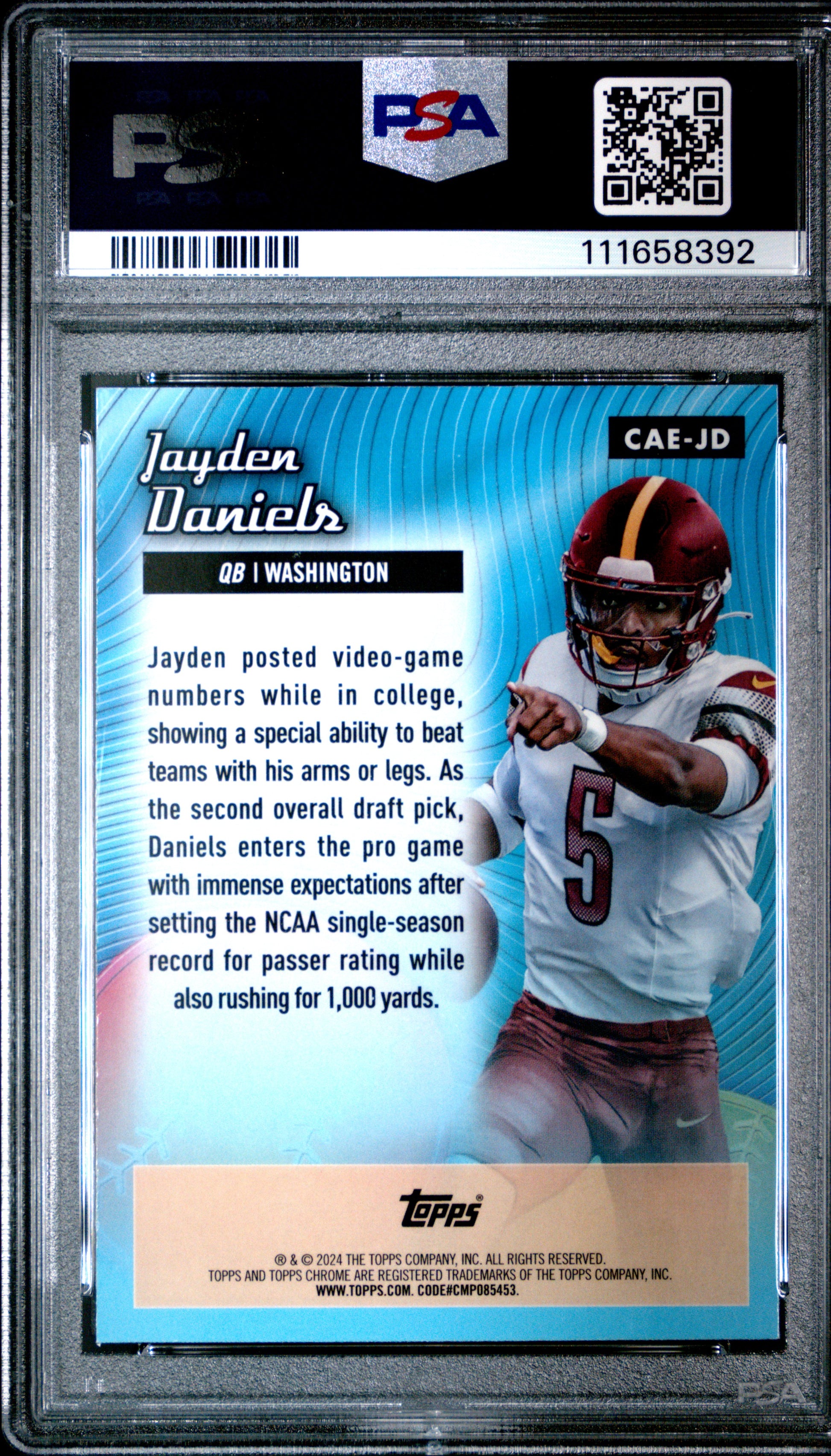 You are purchasing a 2024 Topps Chrome Chrome All-Etch Jayden Daniels #CAEJD Pink Ref PSA 10. You will receive the exact item in the photographs. Thank you for looking. Listed With Mascot.